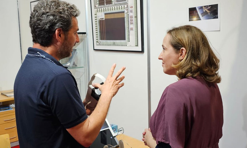 Durante la mañana del miércoles 8 de mayo, el stand contó con la visita de la presidenta del CSIC, Eloísa del Pino, que no dudó en participar en las actividades y mostró gran interés en los talleres. Pudimos verla probando las gafas de realidad virtual y compartiendo sensaciones con el equipo del IMSE.